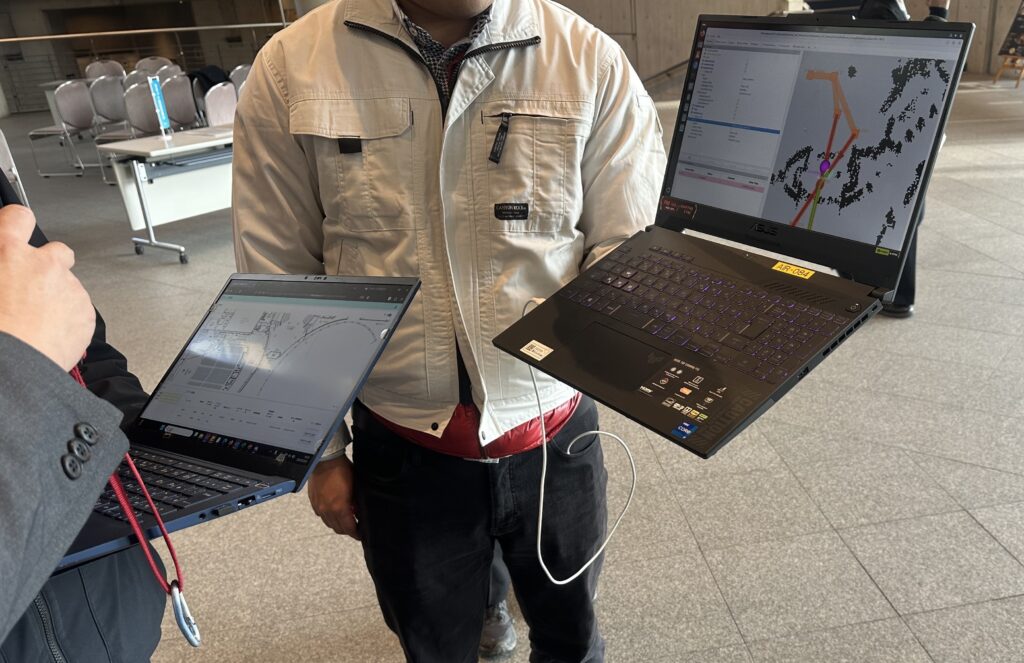 現地では、屋内外をまたいで移動するロボットの動きや、複数のロボットが同時に稼働する様子を実際に確認することができ、実運用を見据えた検証であることを改めて実感しました。