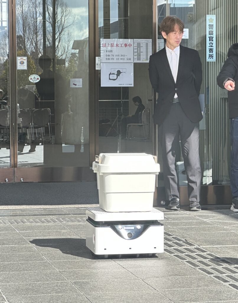 配送するロボ 警備するロボ けいはんなで動作検証