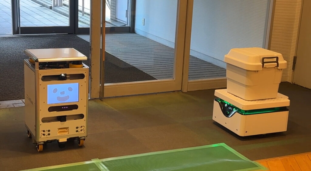 2台のロボットがすれ違いをする実証シナリオの様子です。
