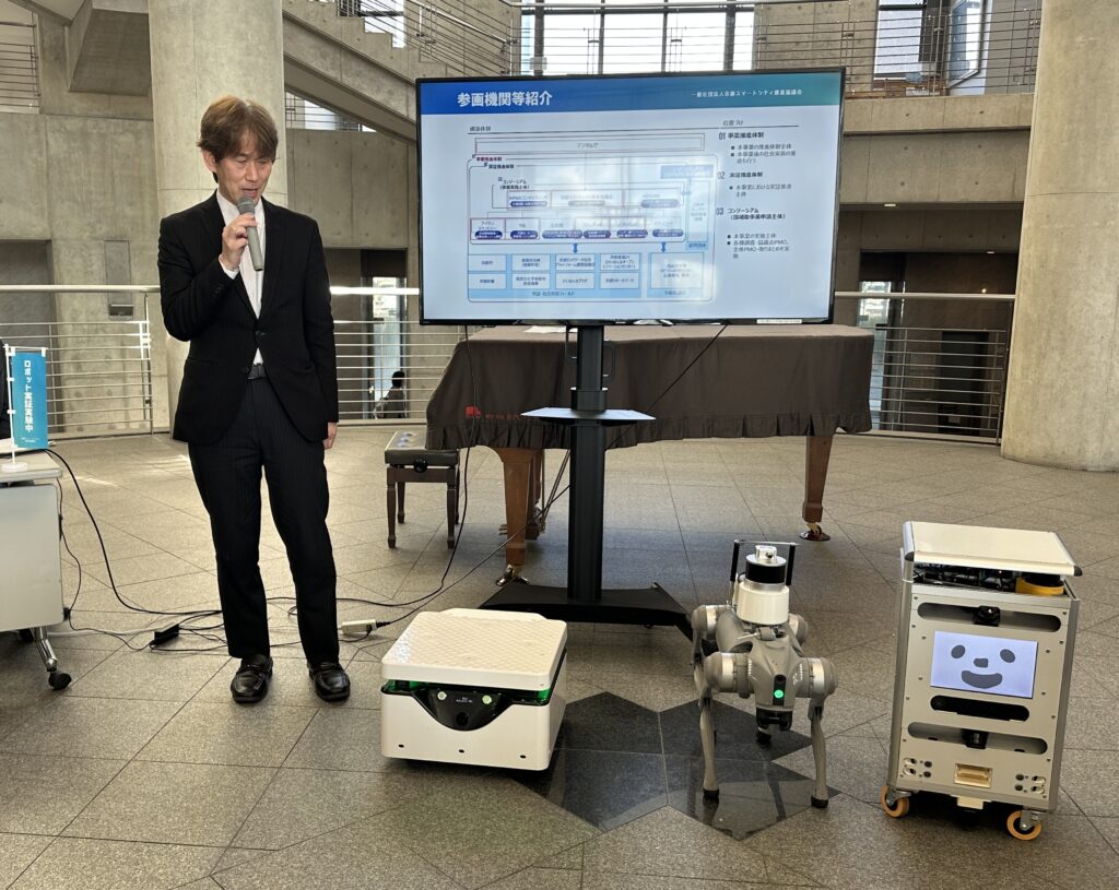 当日は記者および参加者向けの挨拶を皮切りに、実証の概要説明、各ロボットの紹介、質疑応答を通じた意見交換が行われました。
